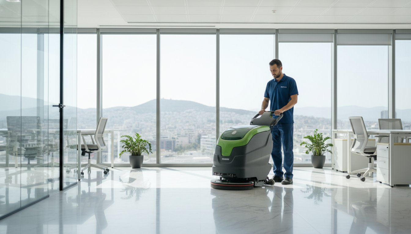 Οι υπηρεσίες καθαριότητας για επιχειρήσεις προσαρμόζονται ανάλογα με τον τύπο της δραστηριότητας. Στα γραφεία και τα διοικητικά κέντρα, η έμφαση δίνεται στους σταθμούς εργασίας. Τα πληκτρολόγια και τα ποντίκια μπορούν να φιλοξενούν έως και 400 φορές περισσότερα βακτήρια από ένα κάθισμα τουαλέτας, οπότε η σχολαστική απολύμανση είναι προτεραιότητα. Στα καταστήματα λιανικής, η φροντίδα εστιάζει στις βιτρίνες και τα δάπεδα υψηλής κυκλοφορίας, όπου η λάμψη ενισχύει την αγοραστική εμπειρία. Για τους βιομηχανικούς χώρους και τις αποθήκες άνω των 1.000 τ.μ., χρησιμοποιούμε εξειδικευμένο εξοπλισμό, όπως το IMOP XXL, που εξασφαλίζει βαθύ καθαρισμό σε ελάχιστο χρόνο.
